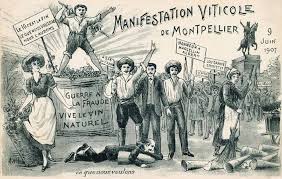 På den gamla goda tiden, när ingen trixade med vinerna utan bara blandade vin från olika ursprung och tillsatte blyglete och flisor och spån från kampeschträd och sånt, och då de franska lagarna under 1800-talets senare del ändrades så det blev mer fritt fram att pimpla kopiösa mängder vin samtidigt som järnvägar drogs fram snart sagt över hela Frankrike och det i ett slag blev både billigt och möjligt att snabbt frakta vin från söder till norr och vingårdarna drabbades av flera olyckor som först oidium sedan både vinlusen och mildiou, då, just då, infann sig alla incitamenten för en massiv import av vin från Spanien och Algeriet till Frankrike och det ledde fram till ett flertal bråk med dödlig utgång under 1900-talet. Bråk som ännu inte är över.